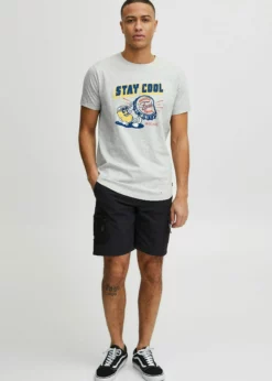 Indicode Jeans IDDANIEL – T-shirt Z Nadrukiem – Light Grey Mix